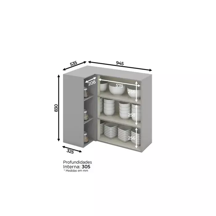 Armário Aéreo Canto Reto 1 Porta Emily Espresso Móveis