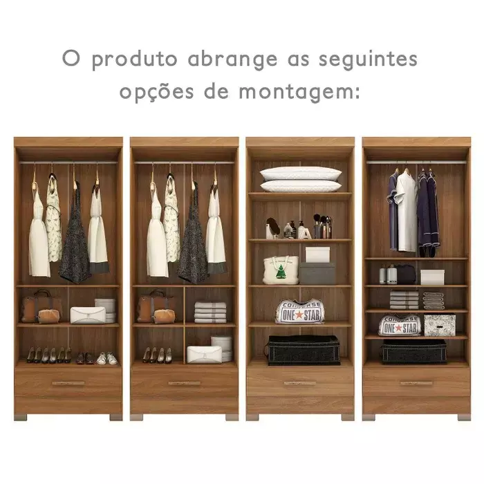 O Módulo Smart Plus, é uma solução moderna e funcional para otimizar espaços. Suas laterais, divisões, chapéus, prateleiras, portas e gaveta são feitas em MDP de 12mm de alta qualidade, além de rodapés de 15mm. O fundo do roupeiro e da gaveta tem 3mm de espessura. Possui corrediças telescópicas suaves, interior na cor do produto, puxador em MDF e cabideiro em alumínio. Oferece quatro possibilidades de montagem interna elencadas em seu manual de montagem de fácil entendimento. Ideal para quem busca praticidade, estilo e organização em um único móvel! Dimensões Altura: 222,50 Largura: 85,40 Profundidade: 46,50 Peso: 5,00