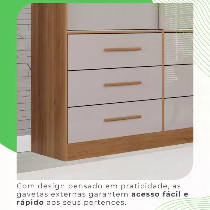 Este lindo Guarda Roupa Luana Sallêto é fabricado em MDP/MDF, diferenciado pela sua resistência, durabilidade, funcionalidade e beleza, ele é a melhor opção para deixar seu dormitório mais arrumado e convidativo. Com corrediças telescópicas que permitem uma abertura total das gavetas, Portas de correr com trilho em alumínio com trava de segurança evitando que a porta se solte do trilho, costa inteiriça sem perfil H, parte interna clean e espaçosa, divisões internas quem oferecem praticidade e organização, puxadores de madeira que garante maior durabilidade. Se encaixa facilmente em vários estilos de decoração. Aproveite, Móveis Sallêto você merece!