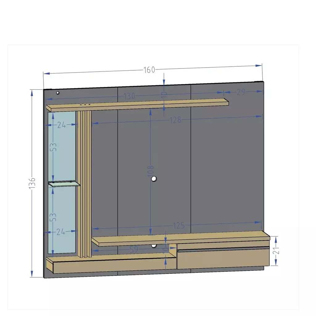O Painel Denver é o móvel que você procura para sua sala. Com design moderno, ele combina linhas retas e ripas que proporcionam muito mais charme e requinte ao seu ambiente. Ele possui espaço para Tvs de 55 polegadas, espelhos decorativos e prateleira de vidro de 0,6cm. Seu LED elétrico possui botão liga/desliga. Porta com dobradiças metálicas e puxador de MDF Revestido. Prateleira superior e tampo em 2,5cm o que garante ao produto maior resistência e durabilidade. Acabamento 3D com efeito marmorizado, tecnologia inovadora para a reprodução do marmorizado por meio de pintura no produto.